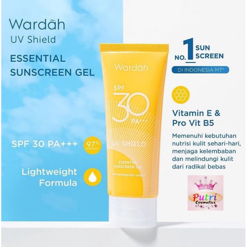 Jual wardah uv shield essential sunscreen gel spf 30 ( 40ml ). Wardah sunscreen spf 40ml. Wardah uv shield sunscreen gel spf 30 40ml. Apa kegunaan sunscreen wardah. Wardah sunscreen gel spf 30